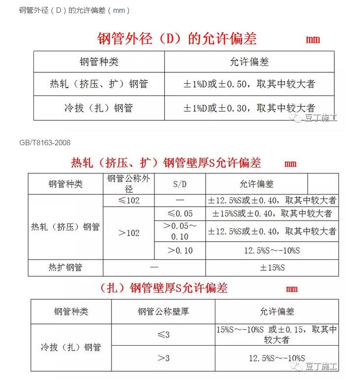 下表為鋼管的外徑允許偏差,熱軋鋼管壁厚允許偏差,,熱擴(kuò)鋼管壁厚允許偏差