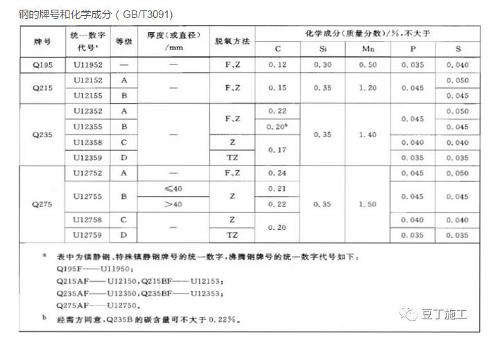 (1)一般鋼 a.碳素結(jié)構(gòu)鋼:(a) Q195;(b) Q215(A、B);(c) Q235(A、B、C);(d) Q255(A、B);(e) Q275。 b.低合金結(jié)構(gòu)鋼 c.特定用途的一般結(jié)構(gòu)鋼